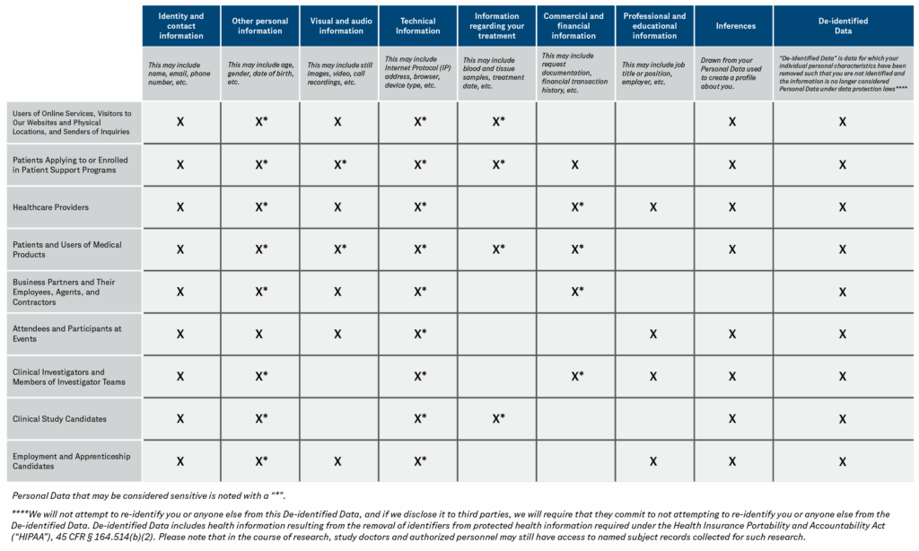 If you are a participant in a clinical study, clinical trial, or other health-related research, you should receive a separate privacy notice regarding the Personal Data we process for those purposes. That privacy notice—and not this Notice— governs our processing of such Personal Data.